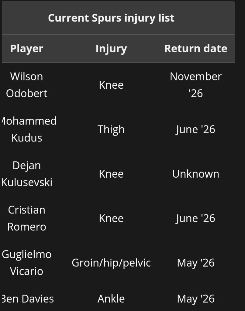 Now Romero is also ruled out for the season, leaving the squad without yet another key player. Spurs’ injury luck this season has been nothing short of disastrous.