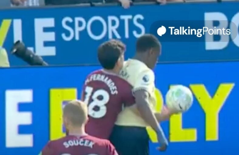 The Everton number 11 was backing into the Portugal international while shielding the ball, only for West Ham’s number 18 to knock it out for a corner with his hand. Bizarrely, despite a VAR review, West Ham escaped punishment—much to the disbelief of David Moyes.